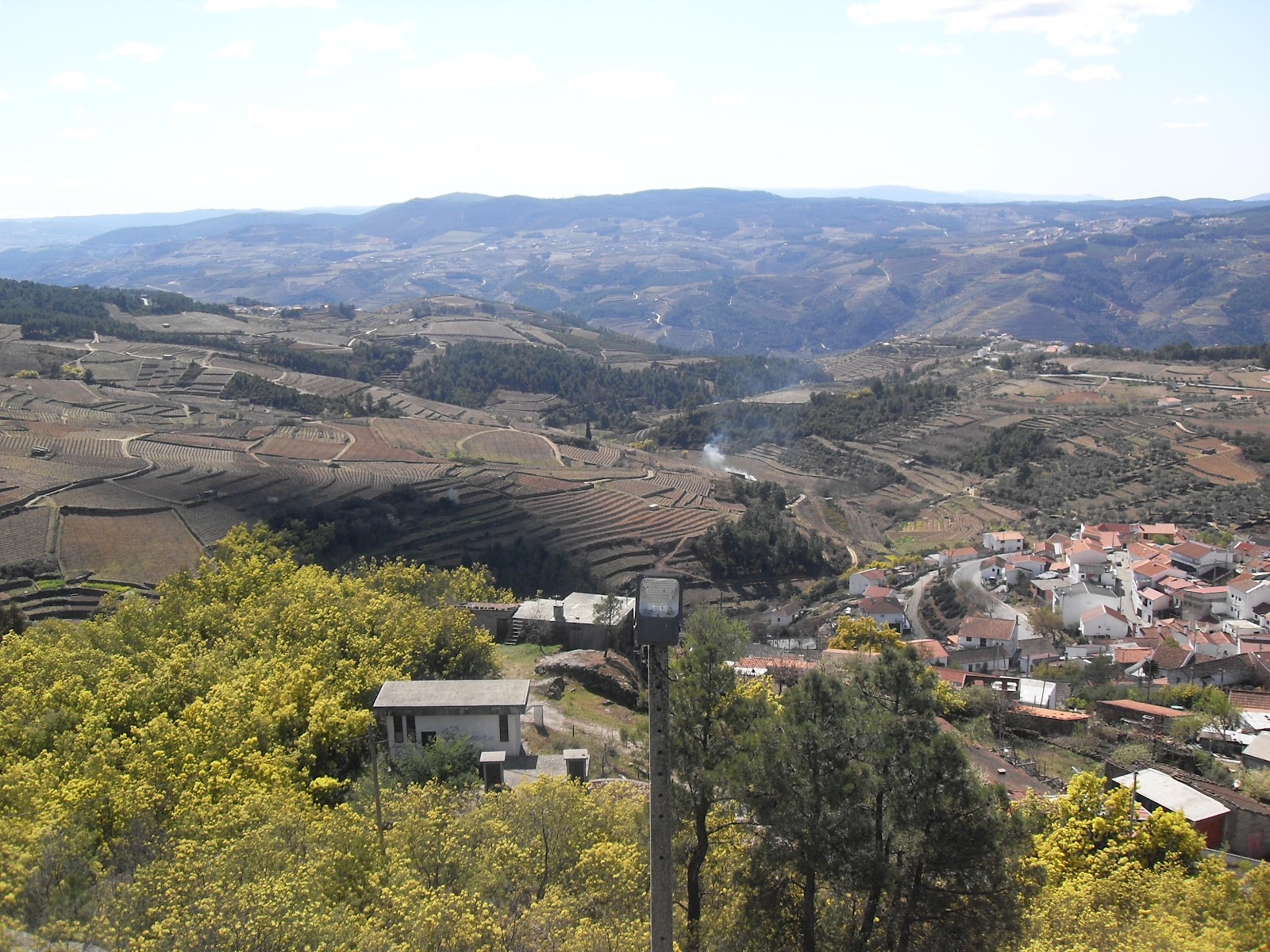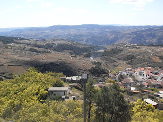 | Pormenor da fachada da Igreja Torre Sineira - situa-se entre a Igreja ea Casa dos Milagres. Destaca-se de edificações semelhantes pela sua singularidade, pois encontra-se separa da Igreja. Alguns subiram mesmo até ao sino. Em termos decorativos é muito semelhante à Igreja. Casa dos Milagres - destaca-se pela simplicidade das suas formas. Ainda continua a cumprir a sua função de abrigo para guardar as tábuas votivas e outros ex-votos. Interior da Casa dos Milagres Capela do Senhor dos Milagres - apresenta uma estrutura muito semelhante à dos outros dois edifícios e igualmente simples. Abriga a imagem de Cristo no acto da crucificação. A Capela vista a partir da Torre Sineira Via Romana que conduz à Capela Fonte junto à Capela Apresentamos de seguida algumas perspetivas da vista da capela: Outros pontos de interesse: Este relógio de sol encontra-se no telhado da Casa dos Milagres e é um dos poucos exemplares existentes no concelho. Atentem as estas pedras arredondados e furadas ao centro. São únicas no concelho. Desde de há muito que são usadas nesta aldeia, criando ramadas ímpares. É pena que estejam a desaparecer! De seguida, viajamos até ao complexo do Santuário da Nossa Senhora da Piedade (em Safins do Douro) para uma merecida pausa e para apreciar um belo repasto em alegre convívio. Deixamos aqui uma amostra da idílica paisagem sobre o Douro. Mas, obviamente, nada como um aproveitar o fim de semana para dar lá uma escapadinha. O dia terminou com a visita à ponte romana situada na mesma localidade. Ainda que exaustos, sentimos que chegamos a casa trazendo na bagagem as recordações de um dia bem passado e uma cultura mais enriquecida. Claro que nada disto teria sido possível sem dedicação da Prof. Leonor Magalhães, da nossa Diretora de Turma e Coordenadora do Projeto, a Prof. Isabel Moreira e aos Professores Valdemar Reis e Cláudia Morais por nos terem acompanhado nesta aventura. Não fica esquecido o inestimável apoio da Câmara Municipal que gentilmente cedeu o transporte para todas estas andanças. |